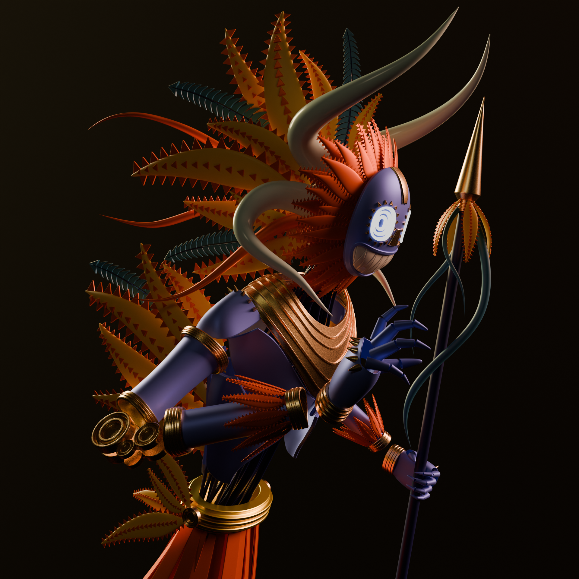Fer Aguilera Reyes' course was a great experience, with many tips and teachings. I made the modeling, rigging, and posing in Maya; for texturing, lighting, and rendering, I chose to execute them in Blender's Cycles to add some personal preferences.
